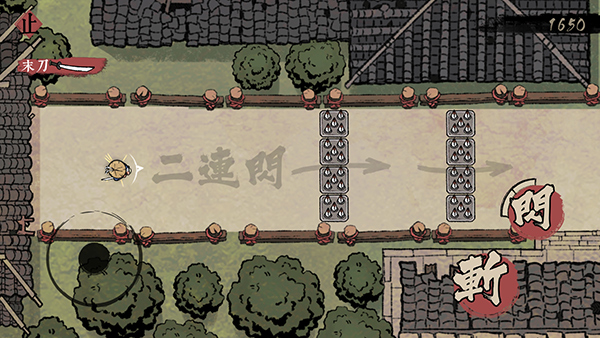 2、其次我们需要知道在操作界面我们的技能基本是什么,玩家的技能分为且也只有三个基础技能,技能除了最为基础的移动,大家还能向敌人进行挥刀,也可以利用冲刺来发动进攻,所以相对来说上手是比较简单的,虽然技能简单,但是我们面对不同的敌人能够使用的兵器是多种多样的,比如叶刀、飞刀、投雷和飞镖等,能够大大提高我们打兵的速度和效率。