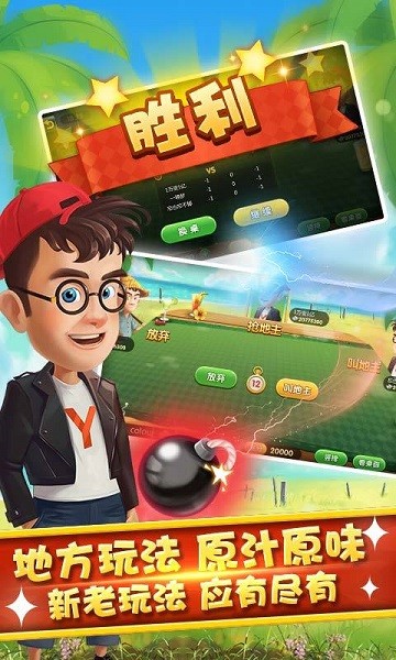 2、斗地主的流行玩法,无癞子不斗地主。随意组牌,炸弹满天飞,刺激无上限!