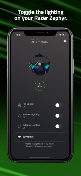 Razer Zephyr是该公司第一个供公众使用的“智能、环保”口罩。与最初的ProjectHazel 概念类似,这个RazerZephyr 口罩与N95过滤器、两个空气交换室和一对双速风扇一起工作。口罩的中心有一个透明的窗口,上面有"一层防雾涂层",因此佩戴者的嘴可以随时被看到。
