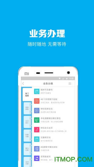 业务办理:优惠上网流量、4G套餐、宽带新装续费,一键办理,省心更省时。