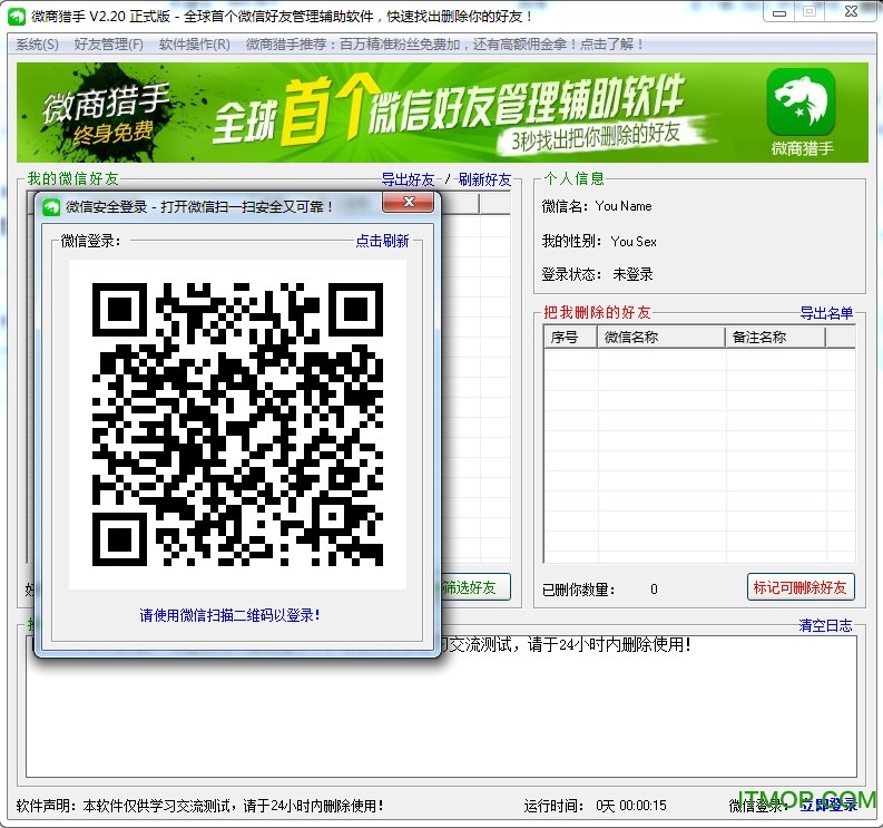 “微商猎手”是全球首款微信好友管理辅助软件,现已更新为“微商猎手”。该软件能迅速识别已删除你的好友,最快仅需3秒。用户无需群发消息,即可无声筛选并标记这些好友。此外,它支持导出好友微信号,防止因账号丢失而与朋友失联。