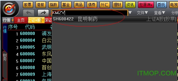 1、在搜索框中输入股票代码或者拼音简称,比如“昆明制药”的话,可以输入600442或者输入KMZY