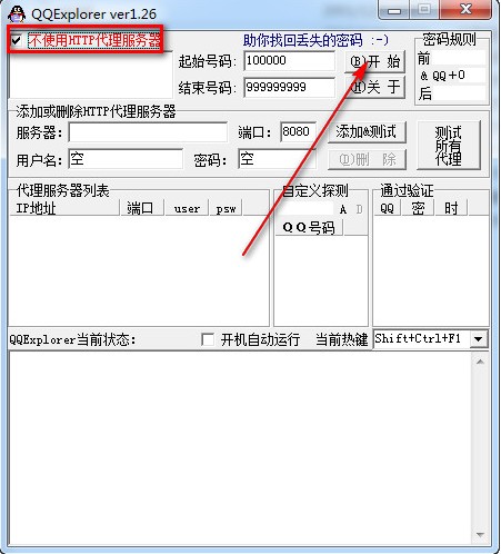 第五步,也可在最上面的地方把“不使用HTTP代理服务器”前面的方框打个√,直接点击开始即可破解。