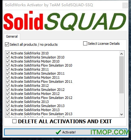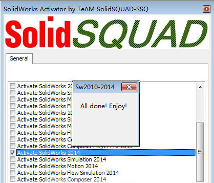 1. 安装应用程序后,启动“SW2010-2014.Activator.GUI.SSQ”,选择对应版本。