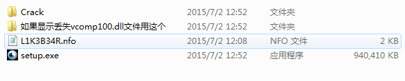 1、下载解压后点击setup.exe进行安装,L1K3B34R.nfo属于信息文件