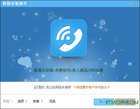 快拨网络电话,语音清晰,质量优异,拨打国内长短途话费低至3分每分钟,资费透明可查,注册即送50分钟长途话费。