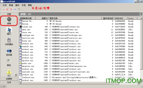 进程查看打开iceword冰刃,找到功能找到【进程】如图,右侧如何显示红色表示异常