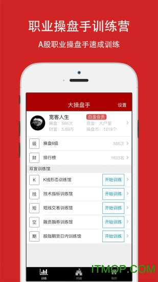 -自选股操盘训练和专项训练馆:区别于纯粹的双盲训练,用户可以通过添加自选股的方式,有针对性的进行操盘训练