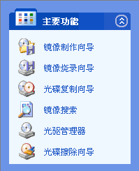 点击左边【主要功能】菜单栏上的【镜像制作向导】菜单选项,打开【Alcohol 120%镜像制作向导】程序窗
