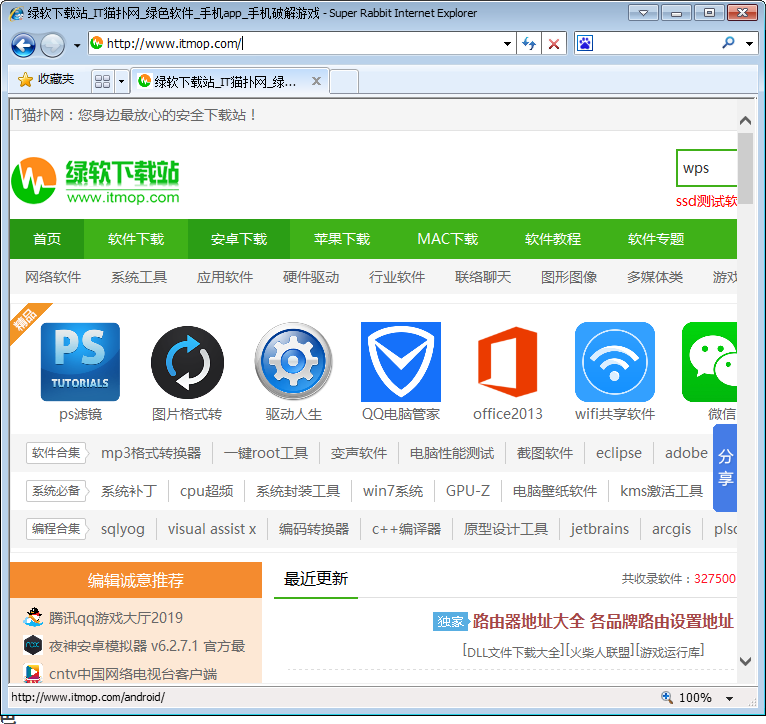 超级兔子浏览器采用了多位一体的技术,有效的节省了系统资源,使浏览速度更快。界面吸取了Chrome的风格,有效的扩大的网页的显示范围,使用户的视野更宽广,更适合笔记本用户使用。界面简洁、舒适,占用资源少,速度快,是超级兔子浏览器的现有特性。