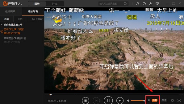 最新版芒果tv新增了弹幕功能,开启方法很简单,在左边随便打开你要看的视频,然后在音量右边有一个弹幕功能,开启就可以了。