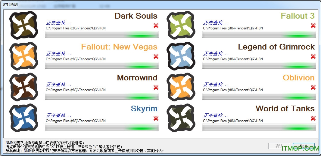 处理:程序刚启动时,NMM会想Nexus服务器发送请求检查你安装包的更新。而该服务器每15到60分钟都会进行一次更新/同步,在这段时间内,服务器将无法检索你的安装包信息,并且可能会返回无效的数值给NMM。然而,NMM此时并不知道服务器已停止检索或者不知道得到的请求返回值并不可用(mod名字错误或者链接错误)。