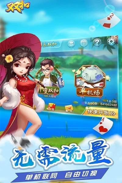 立即下载 多乐双扣最新版 分类:卡牌对战 大小:25.3M 语言:中文 版本:v1.8.24安卓手机版 时间:2022-10-19 12:17:12 手机扫码免费下载 #多乐双扣最新版简介 多乐双扣最新版是一款休闲益智的棋牌游戏,游戏中每天登陆签到会免费领取游戏币,温州的离开家乡去外地打工的小伙伴可以下载这款游戏,解一解思乡之情,喜欢这款游戏的话,就快来进行下载吧。多乐双扣手机版简介双扣”是起源于温州,流行于江浙一带的类似于“争上游”的纸牌游戏,游戏打两副牌,对家两人为一对,一共四人。一对的人要相互配合尽快出完手中的牌。相较于普通版的“双扣”,百变双扣在玩法上会更加的刺激,更加多元化。 多乐游戏,双扣游戏,