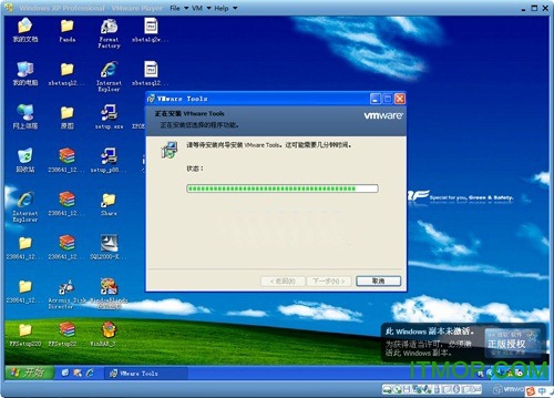安装好系统后,Player会提示用户下载对应操作系统的 VMWare Tools 并安装,大家可以将它看作是VMWare这台虚拟电脑的“驱动程序”吧,例如在虚拟的XP下安装好后便会可以实现真实电脑与虚拟XP的剪贴板互通、文件拖放等功能。