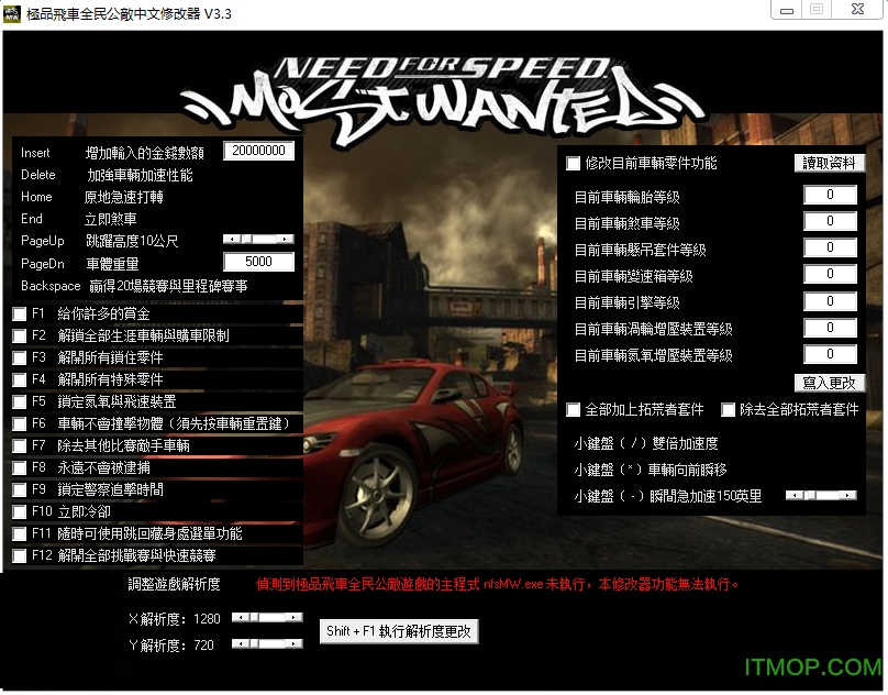 以下是关于极品飞车9作弊器的使用说明及功能简述: