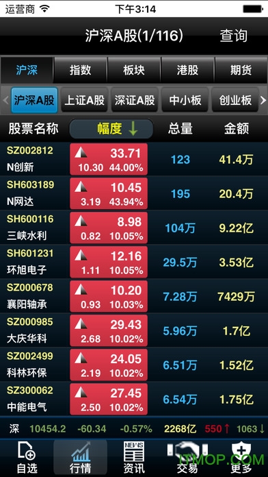 3、沪深AB股、基金、债券、港股免费行情,各大重要指数