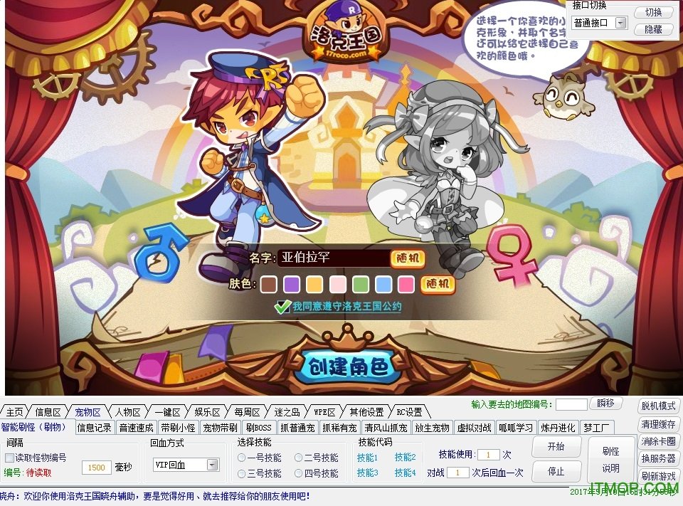 普通刷级、刷BOSS、宠物代刷、傻瓜代刷、刷绝版宠物、自动捕宠、捕捉稀有宠物、刷小游戏(学分 洛克币 体能 智慧 魅力)、一键取物、清理好友垃圾、一键偷菜、杀虫、除草、送稻草人玩具、刷PK积分、一键挖宝、一键学习、一键炼丹、购买物品、出售物品、本地数据修改(自慰改钱 改宠)、瞬移、喊话器、滚动名字、滚动宠物、屏蔽玩家、鼠标连点器、刷农场经验、仿VIP(扫帚飞行、卡位、隐身、仓库、百科)自定义呼出热键、计划任务等