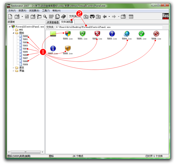 (红2)这里是文件游览器,方便我们查看要替换用的ICON 。
