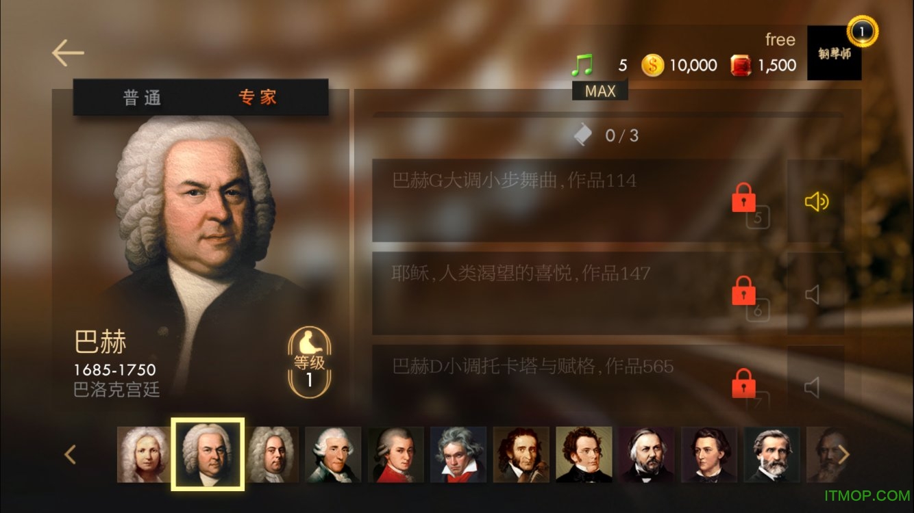 ● 作曲家升级系统:为你喜爱的作曲家升级,可获取更高奖励!
