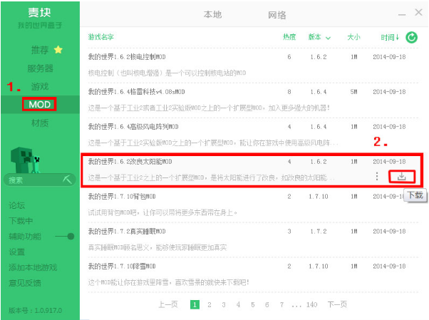 1、在【MOD】区域选择你想要下载的MOD,注意是在“网络”部分