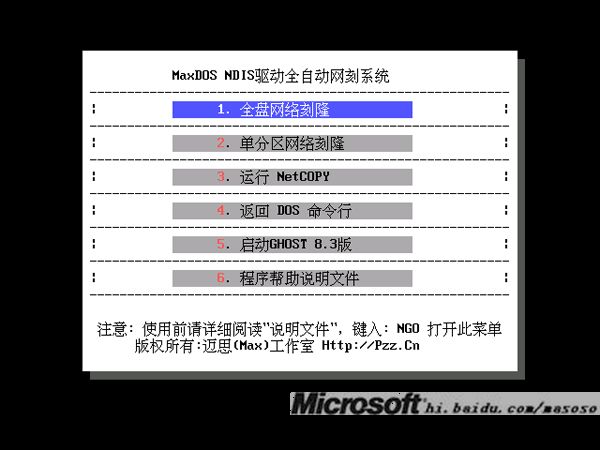 3、按↓键选择第二项或直接按下“B”键进输入maxdos5.8网刻菜单。如下图。