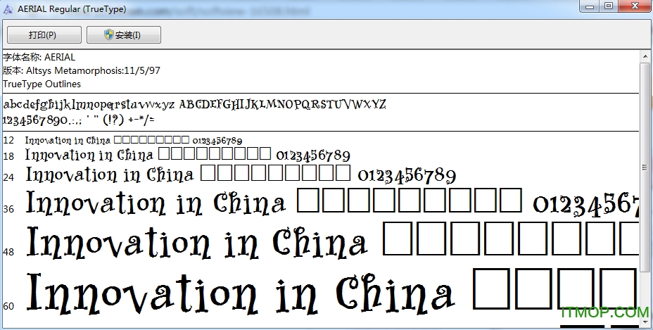 windows xp下找到"控制面板 - 外观 - 字体",粘贴aerial字体文件即可;