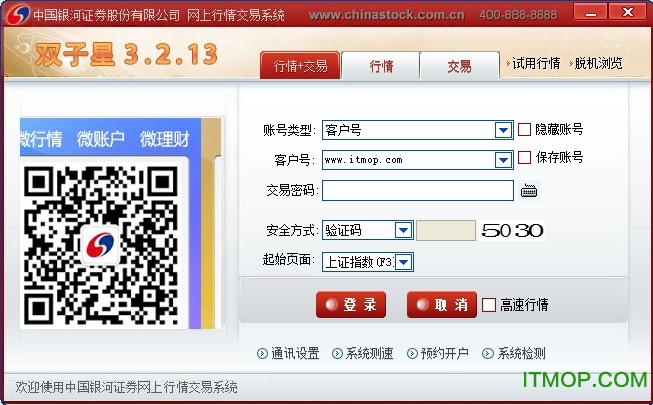 支持银河网厅连接嵌入:行情客户端工具栏及个股分时界面增加个股研报等8个标签,交易里资金股份查询增加账户诊断等4个标签,系统主界面的“银河网厅”标签,方便登录网厅