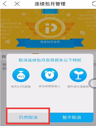 3、点击“取消续费”,点击“仍然取消”即可。
