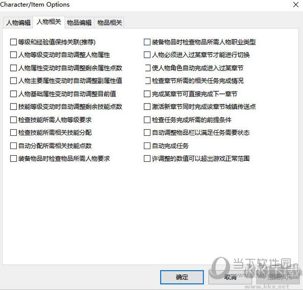 2、然后把“人物相关”选项卡中等级和经验值保持关联这个选项也勾上。