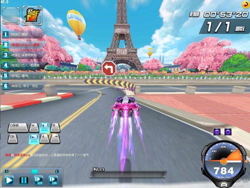 3.放开油门↑,只按下→+Shift两个键,进行第二次飘移(注:这步比较关键!如果按下油门↑的话就会导致过早的进行喷火!)