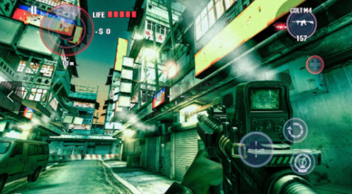 1、游戏操作:左半边屏幕区域是人物的移动区域,右半边屏幕是人物的视角观察区。(比死亡扳机1代灵敏度高多了)。