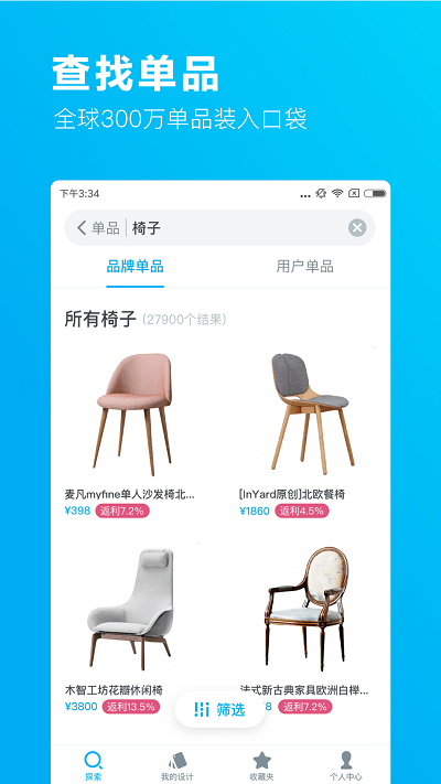 *智能搜索全球300万软装单品,直接定位门店或跳转网店。