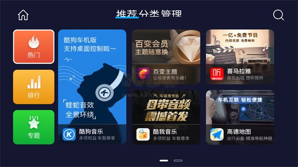 2.专题:这里集合了多种同类型的应用,为用户提供更多选择,推荐最优质的应用例如:车上孩子最爱的应用、游戏类的应用。