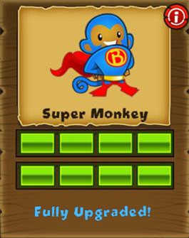 (每发飞镖可以攻击2个气球)→(每发飞镖可以攻击3个气球)→(每次可以发射三枚飞镖)→(增加“变身”技能,把攻击范围内的飞镖猴变成超猴)
