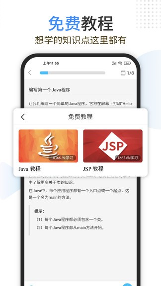 java编程狮app是一个专为编程爱好者打造的学习软件,找了有很多编程教程提供给大家进行学习参考,很多专业性的知识在这里可以任意学习。这里不管有简单的课程教学,还有精品线上视频可以进行观看学习。用户在这里可以学习到更多编程知识,有需要的用户可以下载试试吧