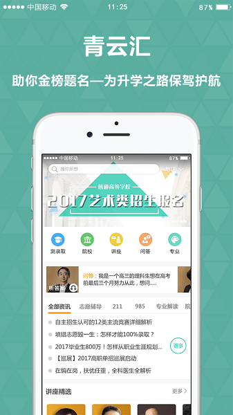青云汇是由重庆市高等教育学会普通高校招生专业委员会、昭信教育科技集团联合开发,依托于权威的招考大数据,拥有高考志愿模拟填报系统、高校专业数据库、在线语音问答职业优势测评、一对一志愿订制等服务等专注于高中升学服务的“教育+互联网”升学服务平台。