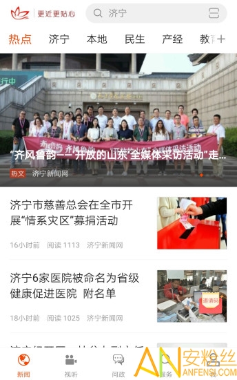 济宁新闻手机客户端是一款手机在线新闻阅读应用平台,济宁新闻app收录济宁本地实时资讯,为用户推送最权威实时的新闻阅读,汇聚济宁本地公共服务资讯,方便济宁市民体验最智慧的生活服务!快来安粉丝手游网下载体验吧!