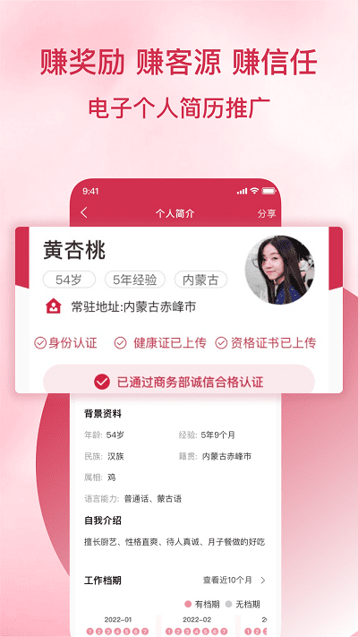 “乌兰美”内蒙古乌兰美健康服务集团有限公司手机客户端应用软件,“乌兰美”手机APP可实现家政服务员身份信息审核,展示健康体检结论等重要信用信息,为家政服务员生成信用查询证书,实现“持证上门”,消费者注册登录后,可在家政服务员授权确认后,查看家政服务员信用信息。广大公众可查询家政服务企业信用记录。