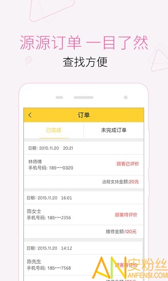 叫我修吧技术端手机端是一款维修服务软件,在这里你能选择各种品牌的电器进行维修预定,用户能根据自己的专长进行设定,让你能轻松接单,感兴趣的用户快来安粉丝下载体验吧!