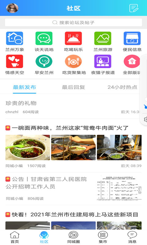兰州同城app是由兰州同城文化传媒有限公司开发的非常实用的当地生活资讯类手机应用软件,平台汇集了很多当地有趣的热点资讯,平台的功能也是非常的强大,几乎可以设计到用户的点点滴滴,为用户的日常生活提供了方便,感兴趣的用户快来下载体验吧。