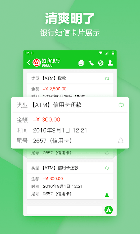 帮助用户整理和管理短信业务的手机短信夹子,能够帮助用户整理删除业务繁多而堆积起来的垃圾短信,自动识别业务短信,一键拒收骚扰垃圾短信,银行快递等功能提醒短信特别显示,还能验证码提取,方便快捷