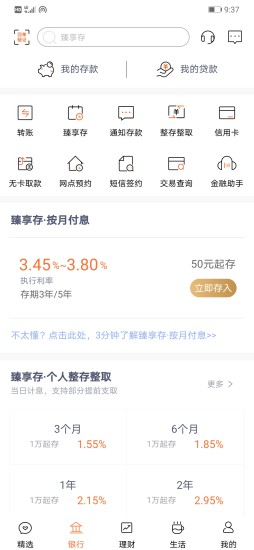 - 手机银行 —— 包括交易查询、转账、信用卡、理财、基金、通知存款、定活互转、扫一扫、账户管理等功能。