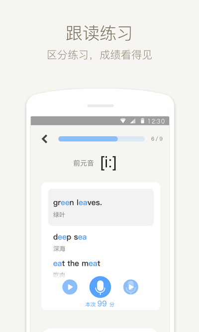 立即下载 英语音标练习app 分类:实用工具 大小:136.6M 语言:中文 版本:v4.2.0安卓版 时间:2023-01-03 12:18:50 手机扫码免费下载 #英语音标练习app简介 英语音标练习app是一款手机遥控操作神器,它可以帮助用户提供48个英文字节,在这里你可以学习到纯正的英语发音练习,需要的朋友们快来下载吧!英语音标练习说明零基础由浅入深学音标.音标是学习英语的第一步,扎实的音标功底是学好英语的关键.实用的音标分类学习:长元音、短元音、双元音、清辅音、浊辅音.包含全部48个音标的标准读音.详细的发音方法、发音秘诀、发音规则、例词发音,帮助矫正你的发音 学习app,英语app,