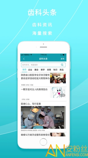 共享牙医app是一款牙科病患者已经医生交流的地方,这里是你就诊赚钱的工具,也是你招聘求职的牙科精英人士,每天还为你推荐新闻动态,为你了解最新的研究成果,同时还有活动比赛,喜欢的小伙伴快来安粉丝手游网下载体验吧!