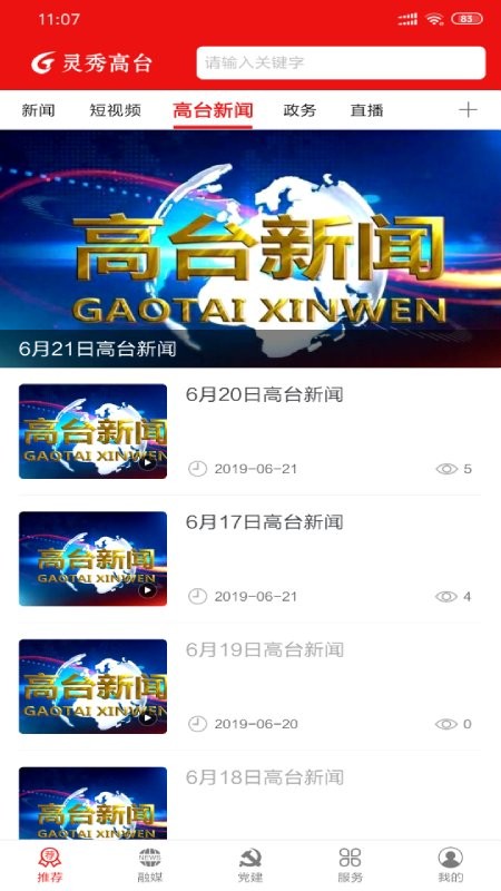 是高台县融媒体中心建设的高台县客户端,坚持“生活+信息+服务”的理念,立足更好引导群众、服务群众两大功能定位,足不出户就能了解天下事,上面不仅能看新闻还能观看当地的新闻直播。