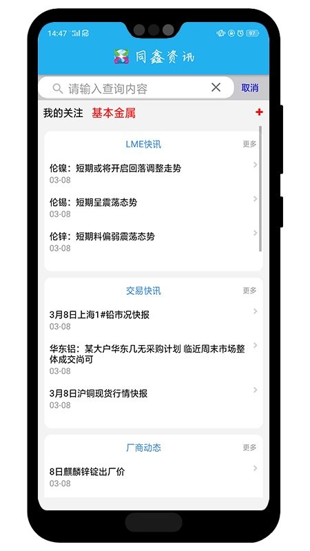 同鑫资讯app是由上海同鑫信息技术咨询有限公司开发的信息数据资讯查看类手机软件,平台功能非常的强大,为用户在做生意方面提供了准确可靠的数字,提高了用户的工作效率,一键查询,非常的方便快捷,有需要的用户快来下载体验吧。