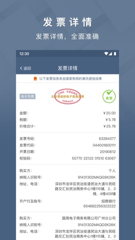 立即下载 查票大师app 分类:实用工具 大小:17.9M 语言:中文 版本:v1.7.0安卓版 时间:2023-01-14 16:33:06 手机扫码免费下载 #查票大师app简介 查票大师app是一款可以对发票进行查询的软件,能够通过发票上的二维码进行信息查看,发票的真伪、查重信息等都能够在这里显示出来,并给还支持手工查验,有需要的用户快来使用吧!查票大师最新版介绍通过扫描发票的二维码,即可查询出发票的全面信息,从发票的采集、审核、查验、统计分析等流程实现发票管理智能闭环管理。不仅带动了财务管理规范化,还提高了会计核算的工作效率,减少工作差错,从而提高财务管理水平, 降本增效,避免税务风险。 发票app,票务app,