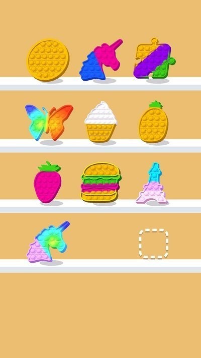 把材料拖来拖去,按你喜欢的方式放在模具里。把它们压成形状,你的玩具就完成了! 你可以随心所欲地弹出泡泡!这些减压的玩具你可以亲自在游戏当中进行体验,整个游戏的玩法上面都比较的简单,只需要根据模具来进行按压就可以了。