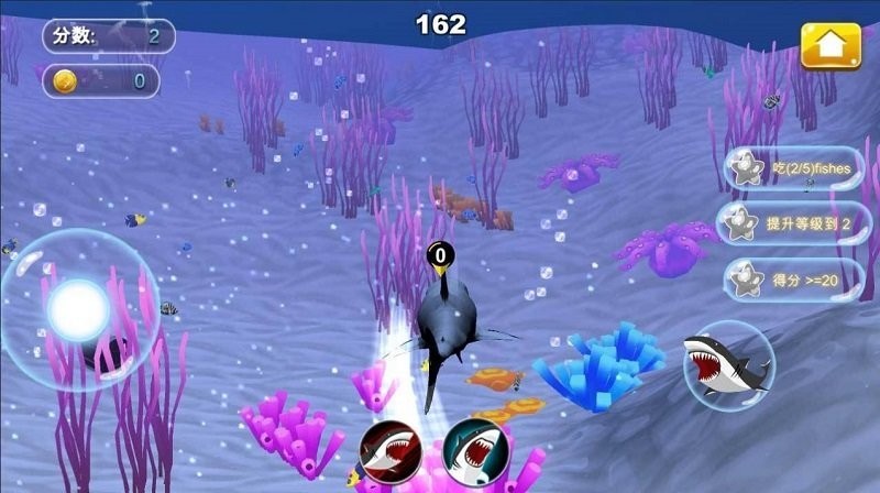 一群鲨鱼吃小鱼增大体型和等级,等级高的鲨鱼可以吃掉等级低的鲨鱼,一群鲨鱼相互追赶,谁能生存到最后,谁就是赢家!在这个弱肉强食的世界中,玩家们需要运用自己的智慧在这个危险重重的海洋中活下去。