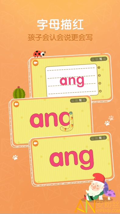 画面精致:q萌卡通画风、鲜艳明亮的配色,符合孩子审美,让孩子更易认知,更能激发安粉丝学习兴趣。